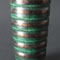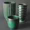 釉薬:緑釉銀彩(中央、右) 作:Arne Bang(左) 作:Wilhelm Kage(Gustavsbergアートピース)(中央、右) 年代:1950年代 国:デンマーク(左)スウェーデン(中央、右) サイズ:口径5.8×高さ10.3cm(左) 口径4×高さ9.8cm(中央) 口径4.9×高さ5.5cm