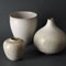 釉薬:油滴エッグシェル釉 作:Nils Thorsson(Royal Copenhagenアートピース)(左) 作:Natarie Krab(Saxbo)(中央) 制作:Saxbo(右) 年代:1950~1960年代 国:デンマーク サイズ:口径1.8×H6.7(左) 口径9.2×H11(中央) 口径1.6×H11.5(右)